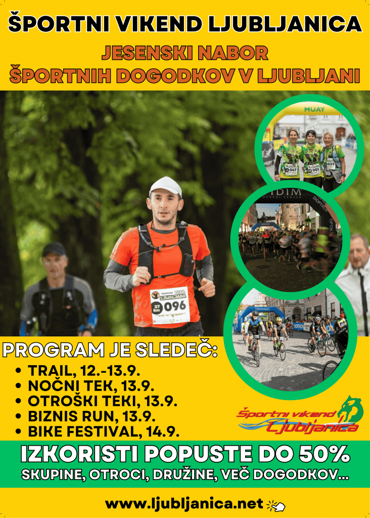 Na voljo za udeležbo pa je v kombinacijah seveda ogromno popustov, saj želimo da se udeleženci, ki ste letos že tekli ali kolesarili na naših in drugih dogodkih, v Ljubljano vrnete. VEČ V NOVICI TUKAJ.
