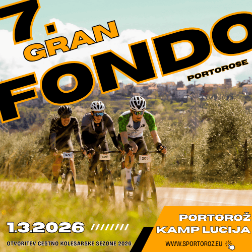 Cestno kolesarsko sezono tudi v 2026 otvorimo v Portorožu, na 7. GRAN FONDO PORTOROSE. Prijave so sedaj že odprte zato si rezerviraj termin 1.3.2026 in do 4.12. ujemi EARLY BIRDS startnino.