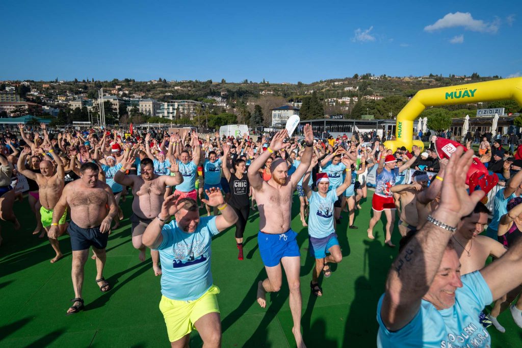 V novoletno morje so tako skočili superman, božički, dedki mrazi, ribice, školjke, kuharji in še ostale že skoraj pustne maske. Da pa ni prišlo do prevelikega šoka, smo tudi tokrat udeležence in udeleženke konkretno ogreli v našem uradnem ogrevalnem prizorišču, ki je bilo dobesedno natrpano z gledalci in navijači.